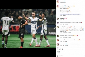 穆勒也在社媒晒照纪念,写道:“多么棒的团队,还有最好的球迷,在这个美妙的城市。我们还渴望赢得更多,现在团结一心!”