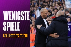 据Opta统计,孔帕尼执教拜仁40场德甲比赛,战绩31胜7平2负,获得100积分,德甲历史上只有瓜迪奥拉以更少场次(39场)获得100积分。