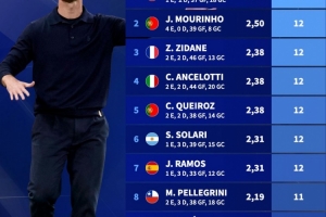 体育资讯10月10日讯 德国转会市场统计了2000年以来皇马主帅前16场比赛的胜利场次,并列出榜单,阿隆索13胜居首,穆里尼奥、齐达内、安切洛蒂12胜。