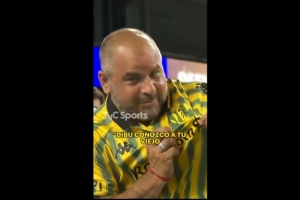 阿根廷队今天在迈阿密与委内瑞拉队热身,赛前,阿根廷队门将大马丁看到了一位身穿他的家乡球队阿尔多西维球衣的球迷,并约定赠送训练服。随后,大马丁让工作人员将自己的训练服赠送给这位球迷。