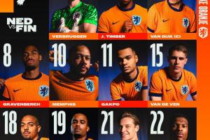 荷兰替补:13-罗夫斯、25-弗莱肯、2-范赫克、5-阿克、6-德弗里、17-哈特曼、7-西蒙斯、12-弗林蓬、14-赖因德斯、16-斯豪滕、20-库普梅纳斯、9-韦霍斯特