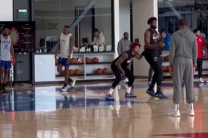 恩比德在今年2月22日因膝伤休战并于4月接受膝盖手术赛季,他近期已经参加了公开训练。